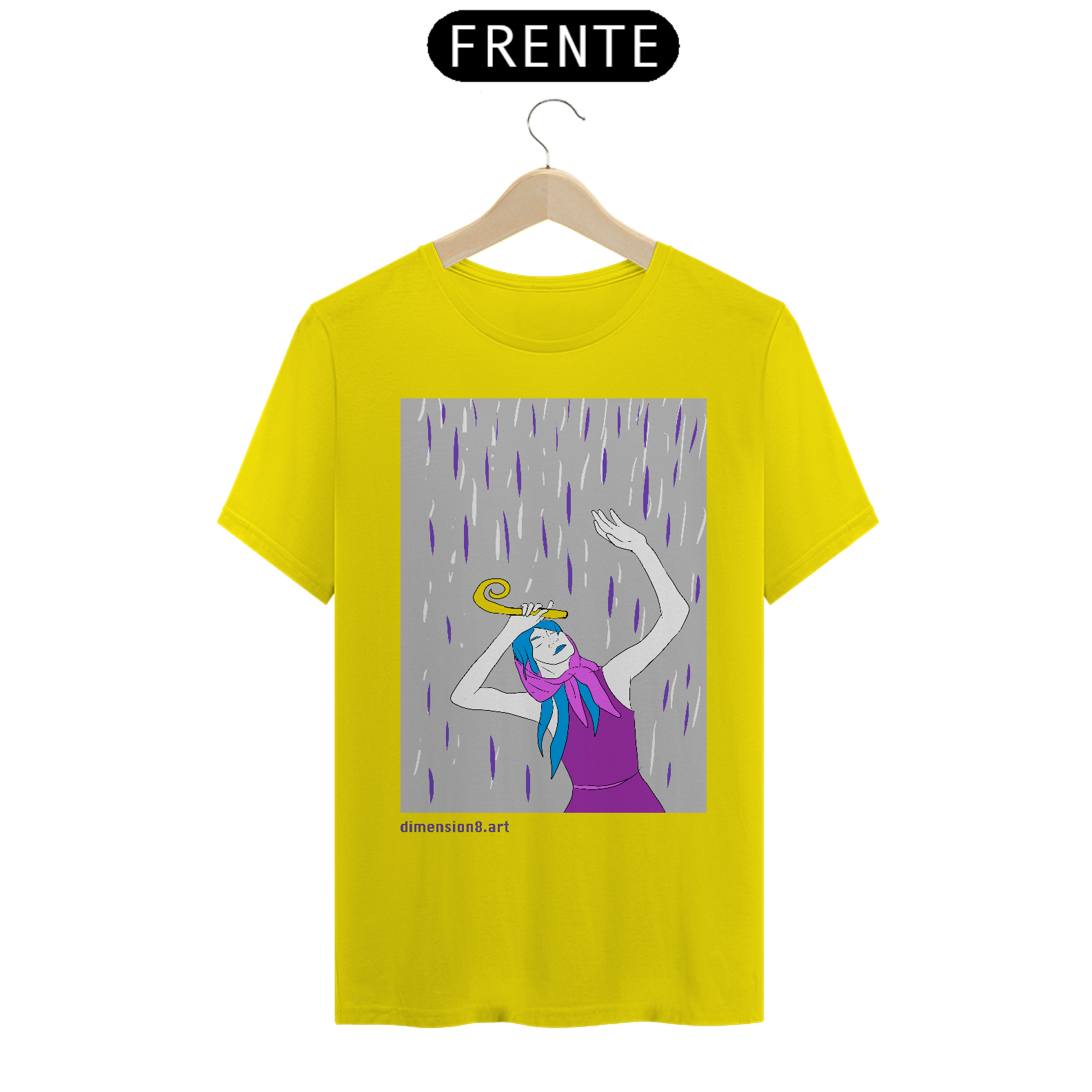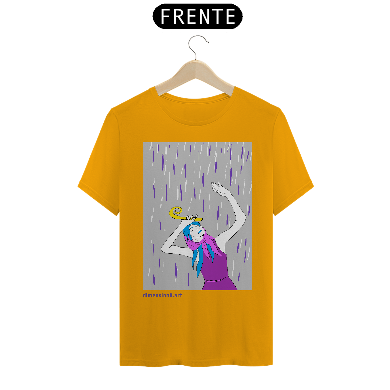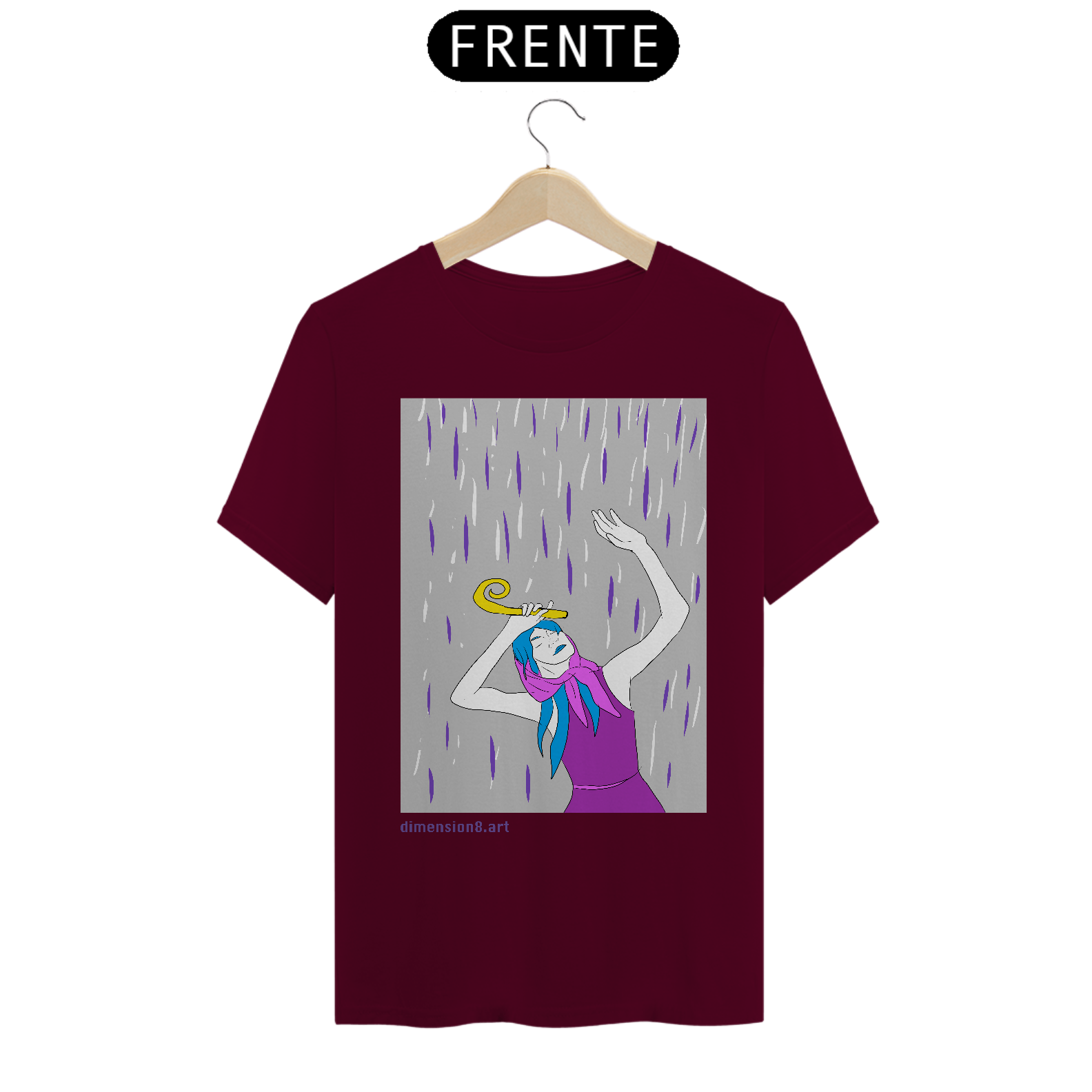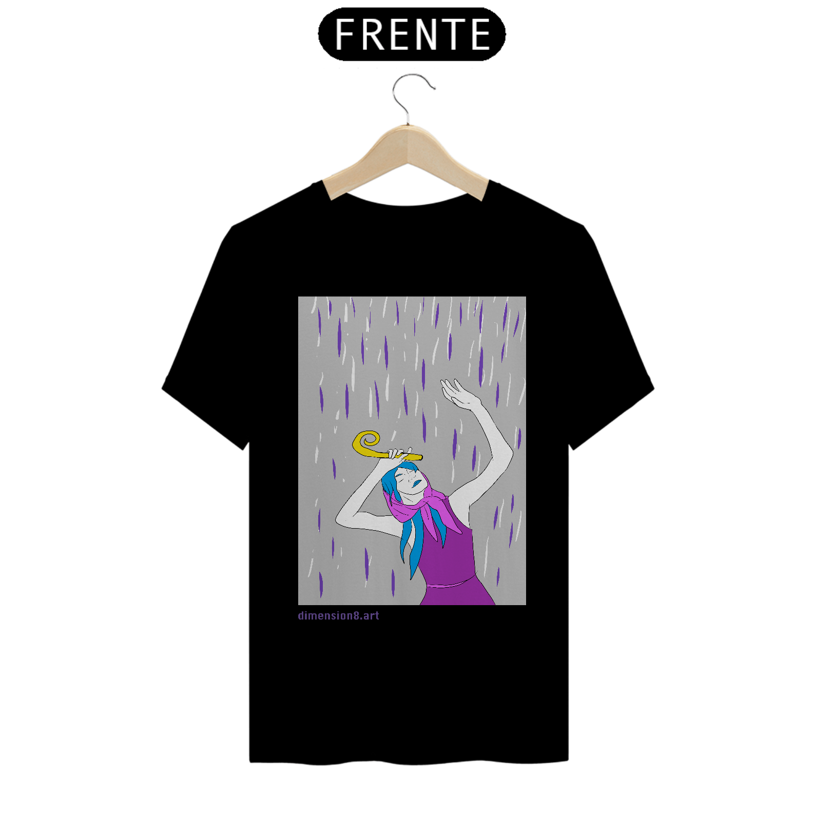 A estampa “Cajado e a Chuva” simboliza força tranquila, sabedoria e autocuidado. Uma arte que fala sobre seguir, mesmo em dias nublados — com os pés firmes e o olhar em paz.