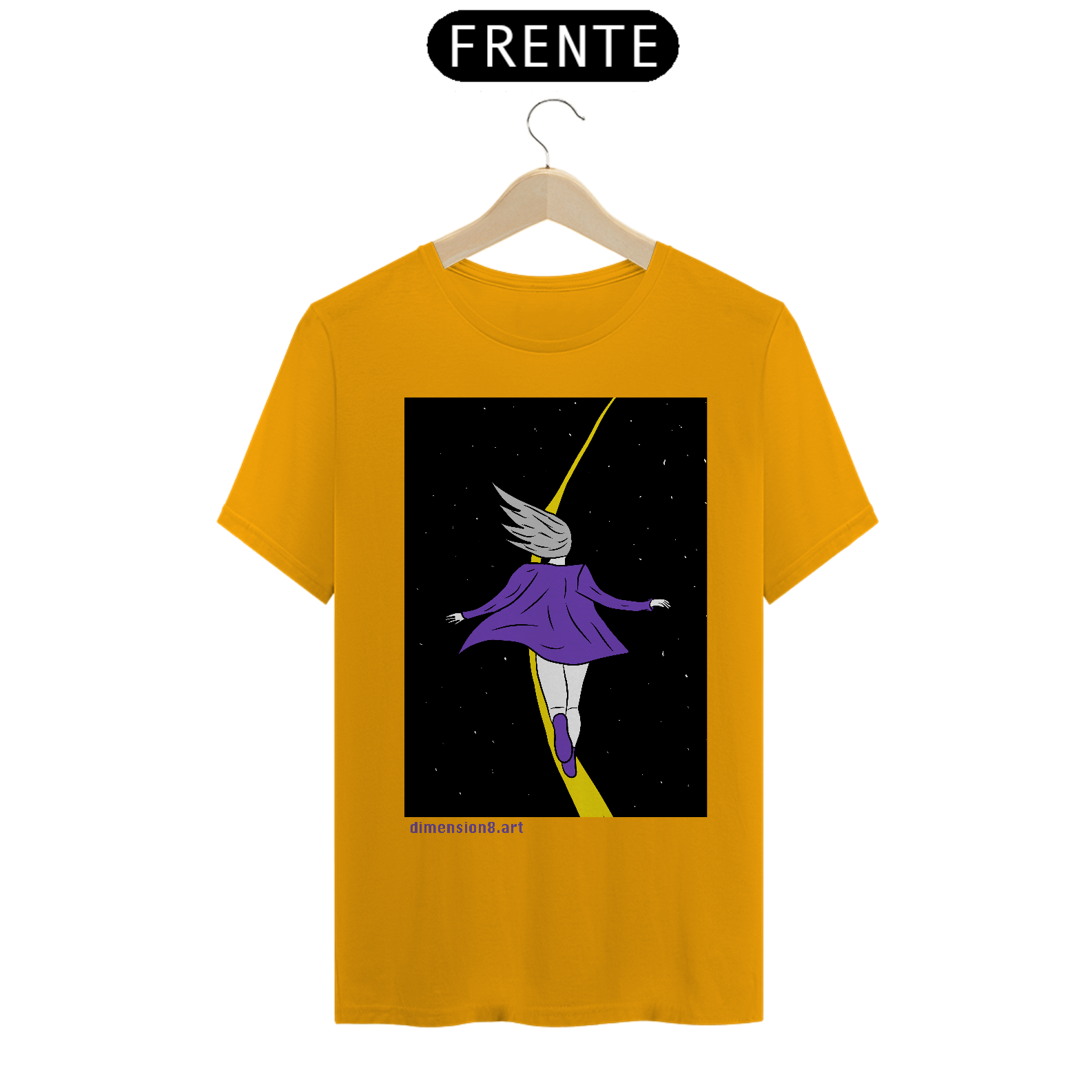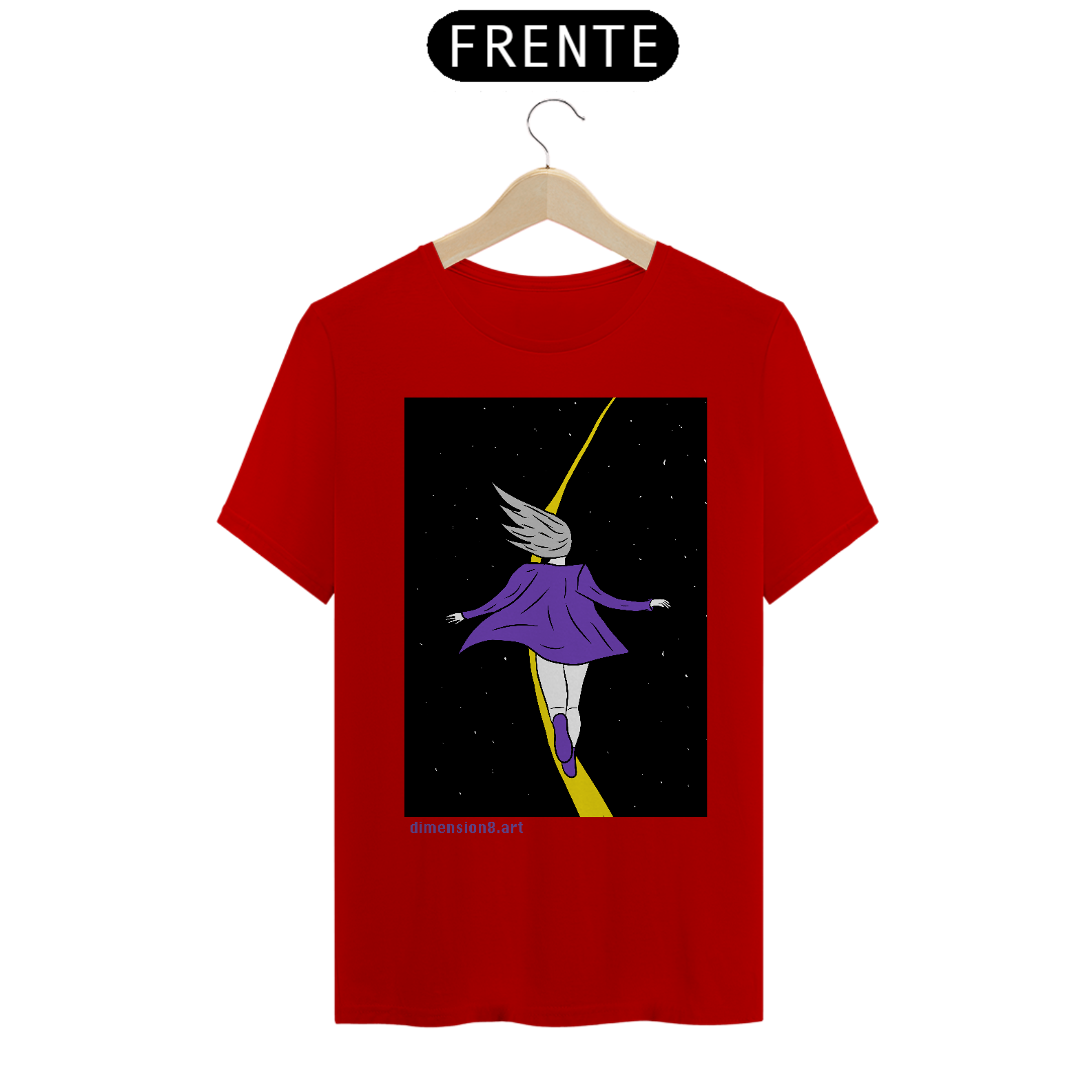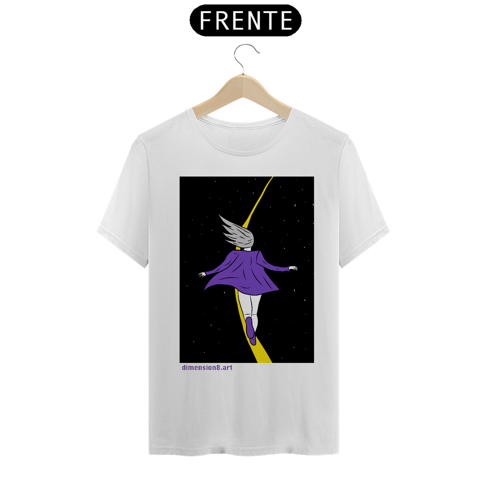 Confeccionada em malha 100% algodão penteado (165g), com toque macio, costura reforçada e modelagem unissex. Ideal pra quem carrega o universo no peito e a vontade de voar nos pés.