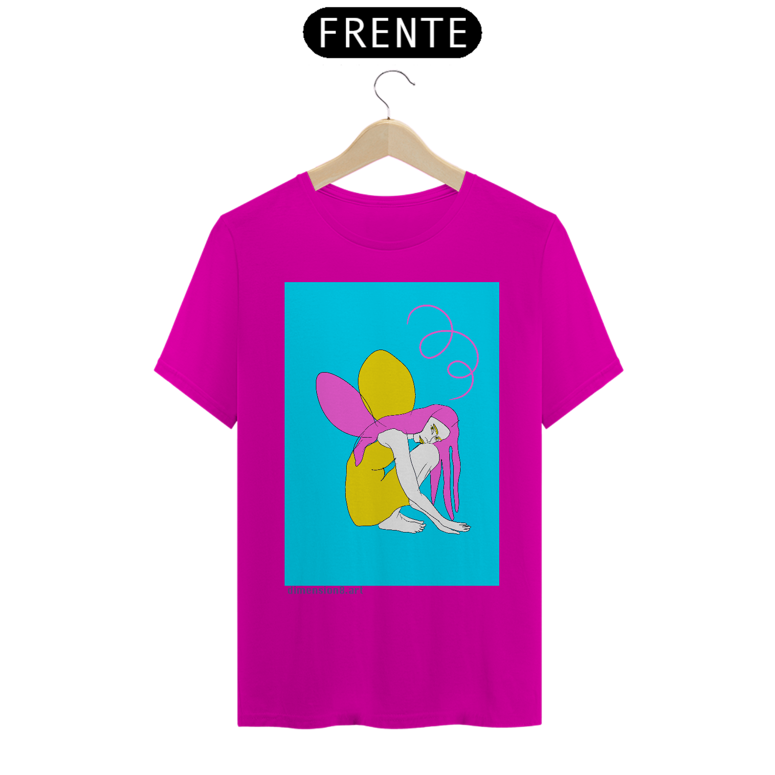A estampa “Fada com Fundo” traz uma atmosfera etérea e profunda — como se fosse retirada direto de um sonho lúcido. Uma peça que mistura delicadeza com presença, feita pra quem quer flutuar com firmeza.