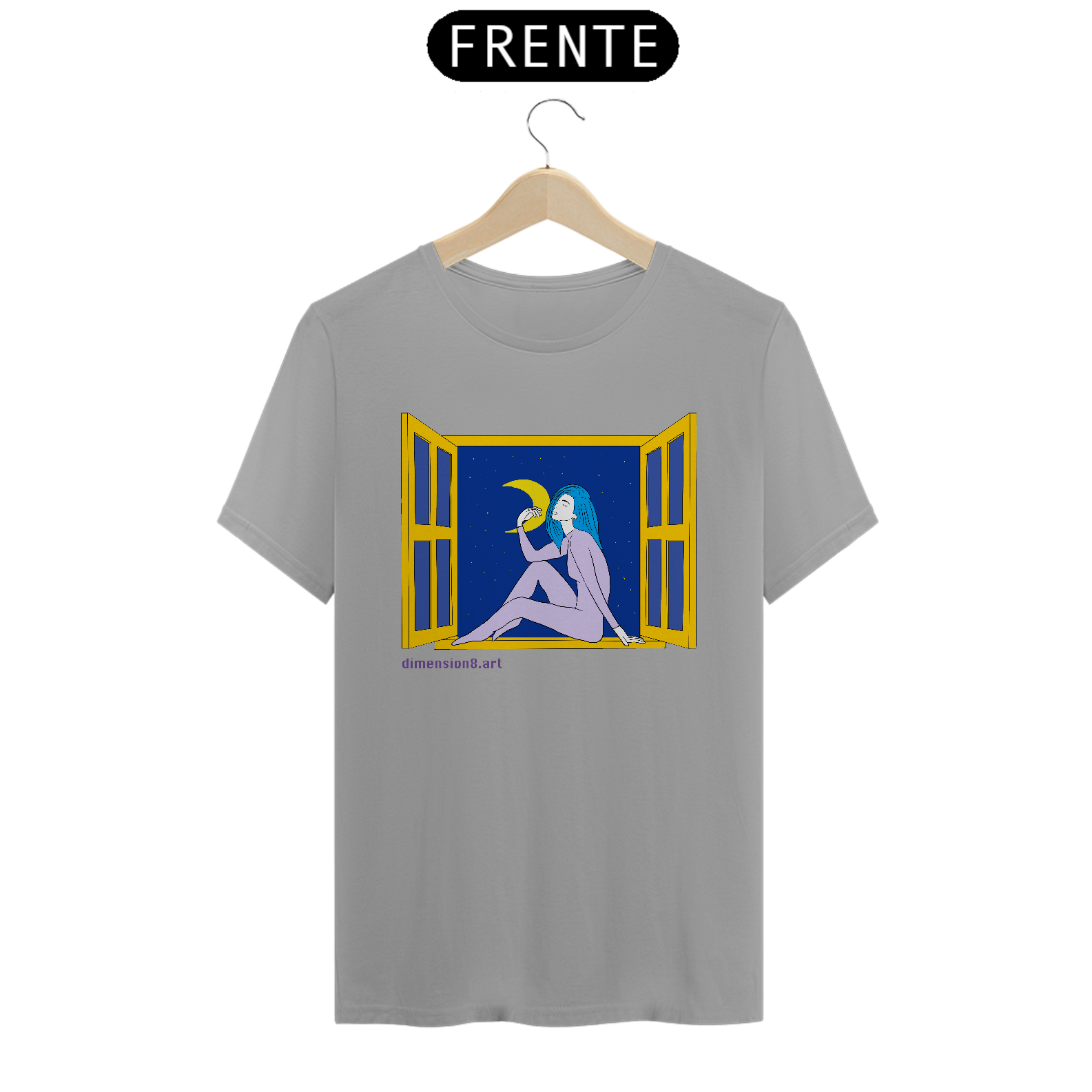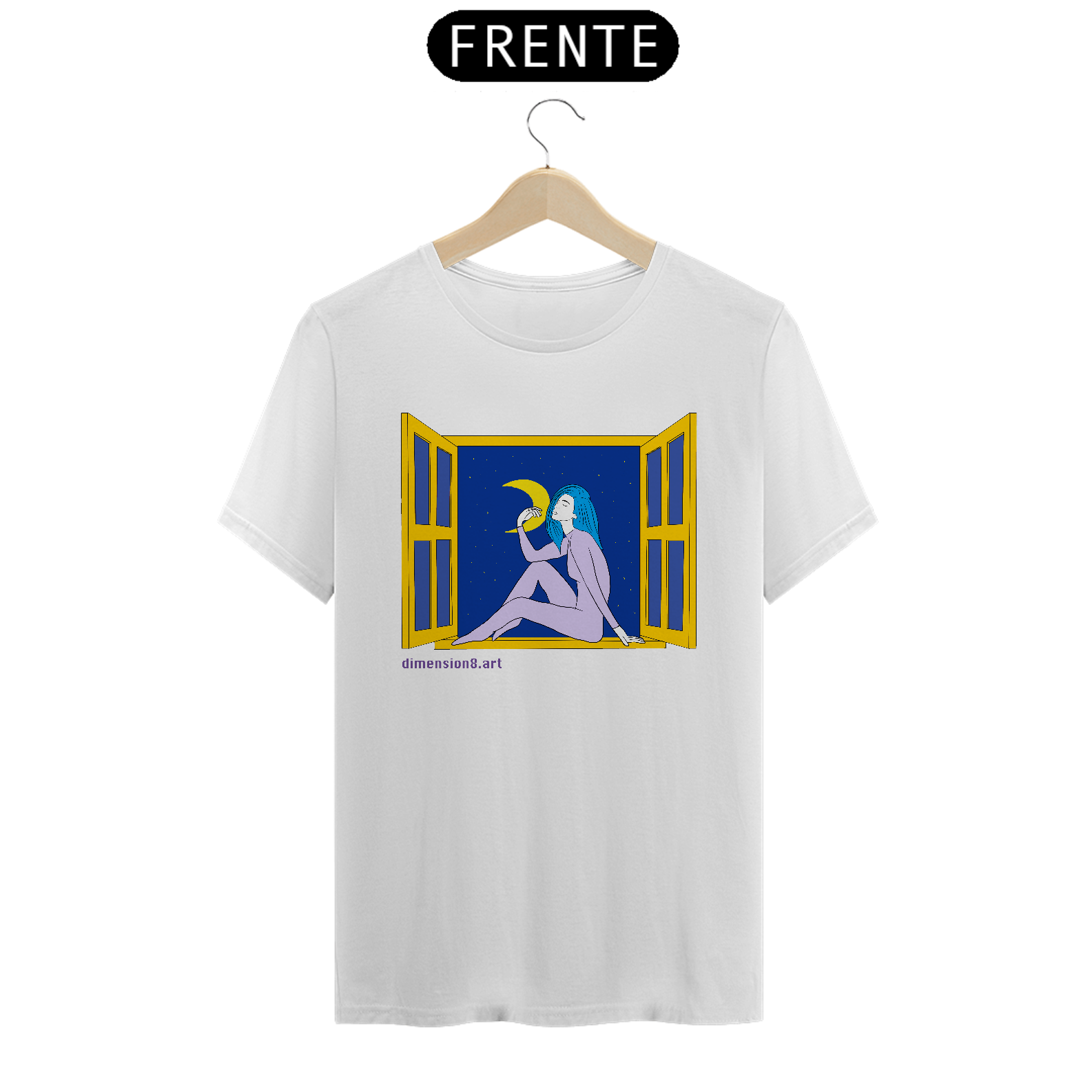 A estampa “Na Janela” representa aquele momento em que o corpo tá aqui, mas a cabeça já foi — e tudo bem. Uma arte autoral da Dimension8.art feita pra quem sente o mundo em silêncio.