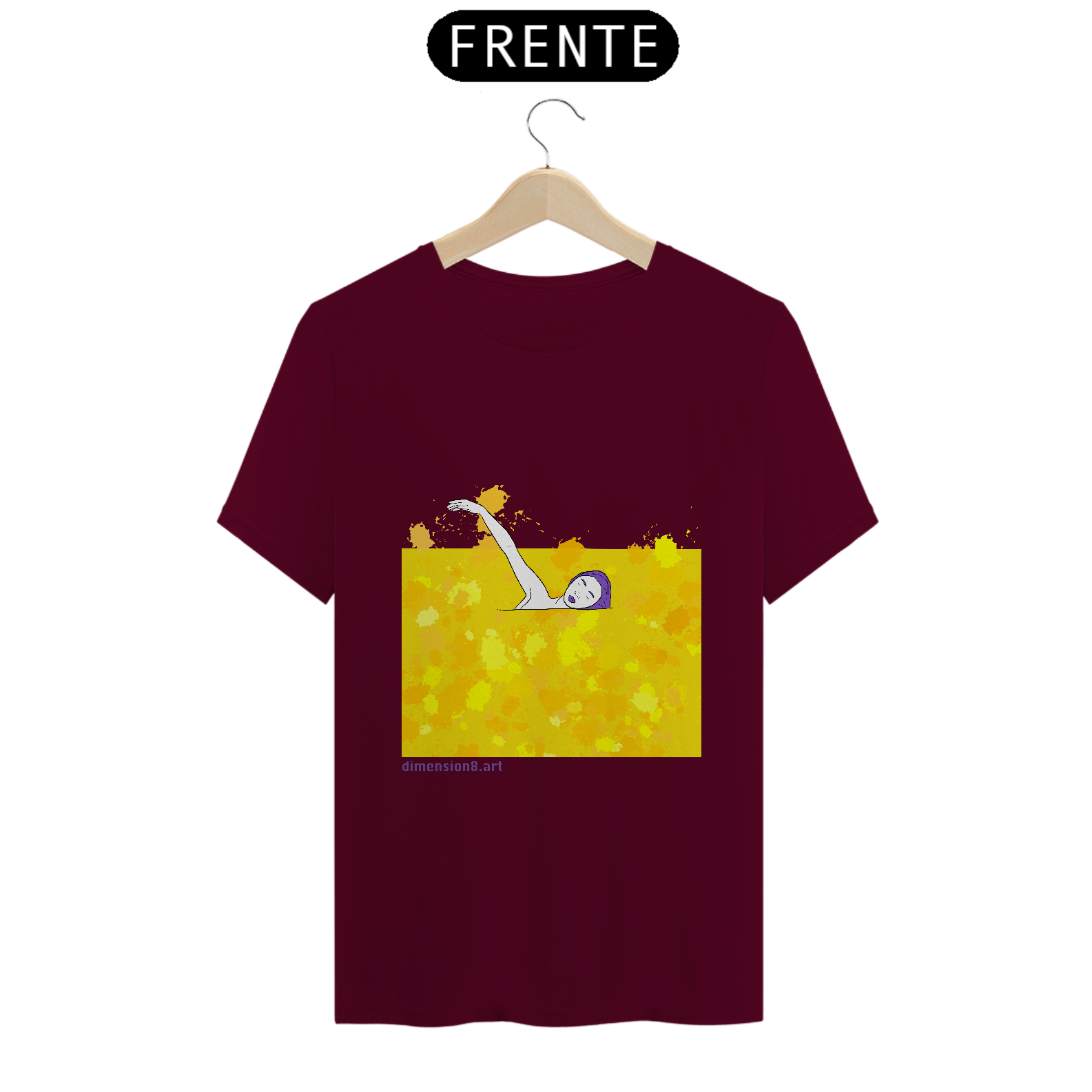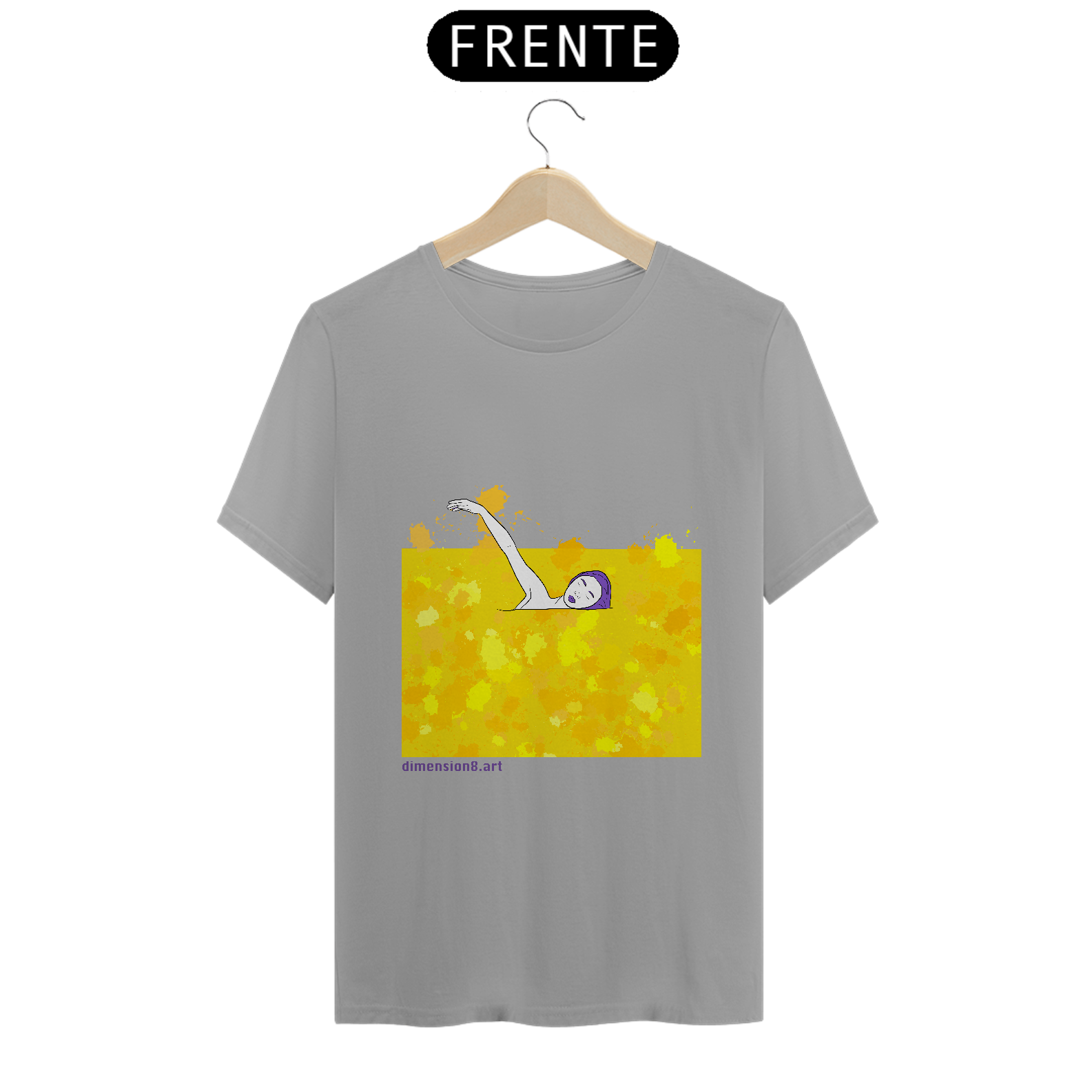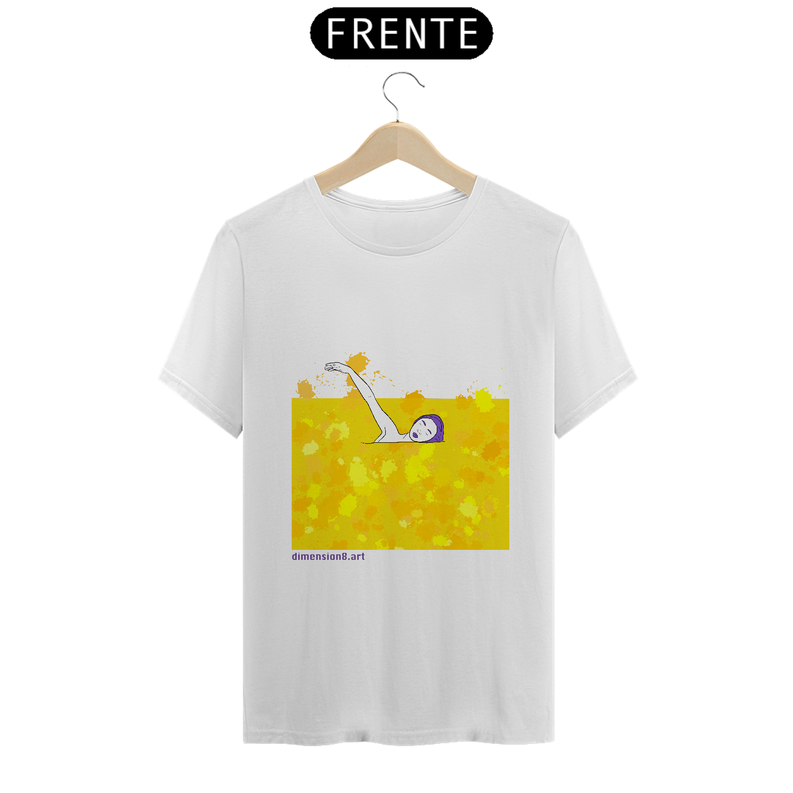A estampa “Nadando” mergulha em camadas de expressão visual e significado. É sobre se perder, se encontrar, fluir. Pra quem carrega profundidade até no que veste.