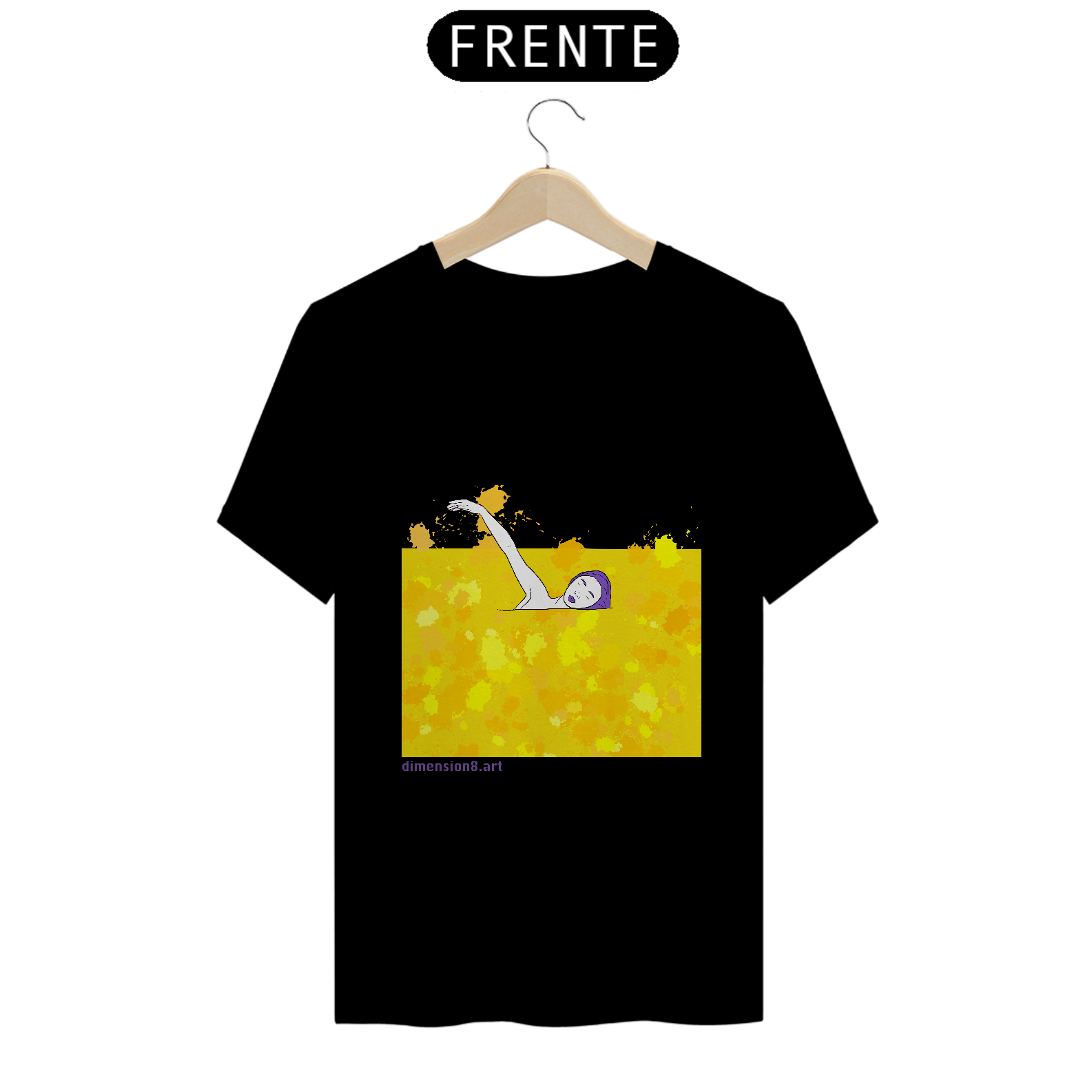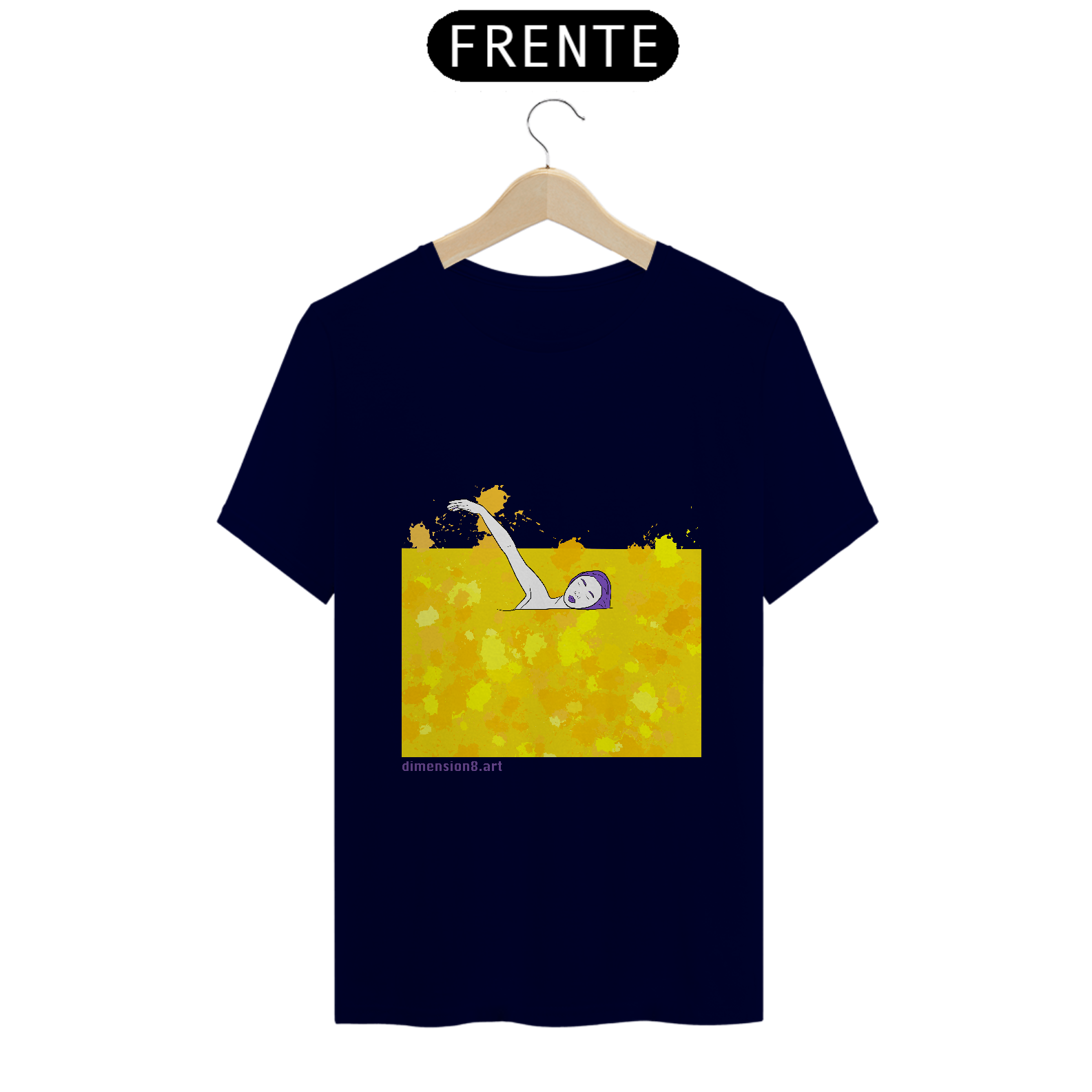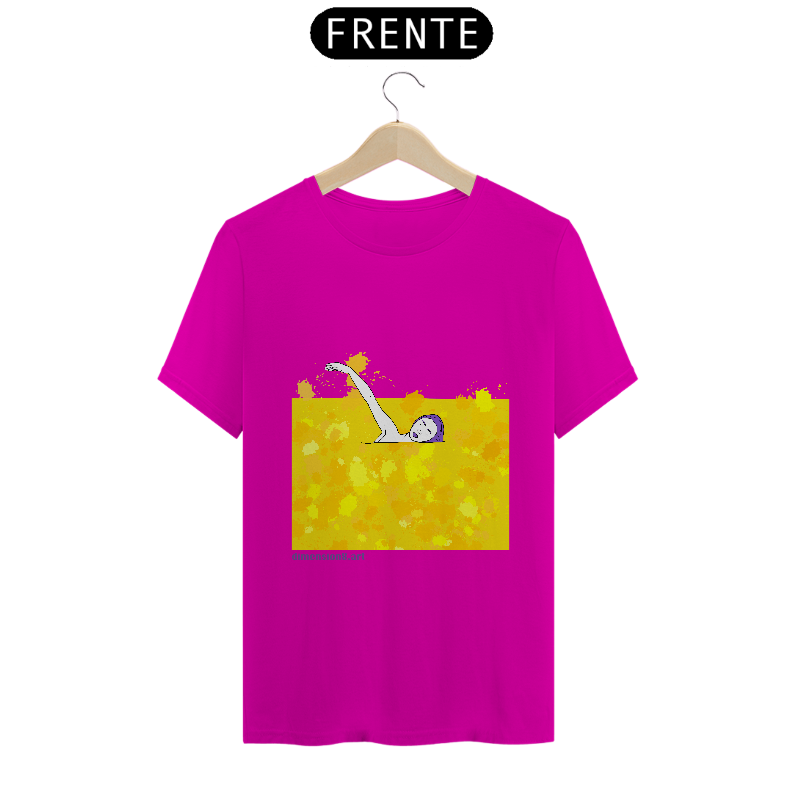 A estampa “Nadando” mergulha em camadas de expressão visual e significado. É sobre se perder, se encontrar, fluir. Pra quem carrega profundidade até no que veste.